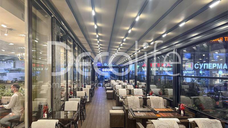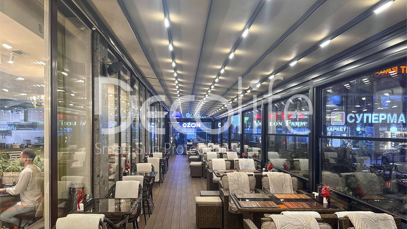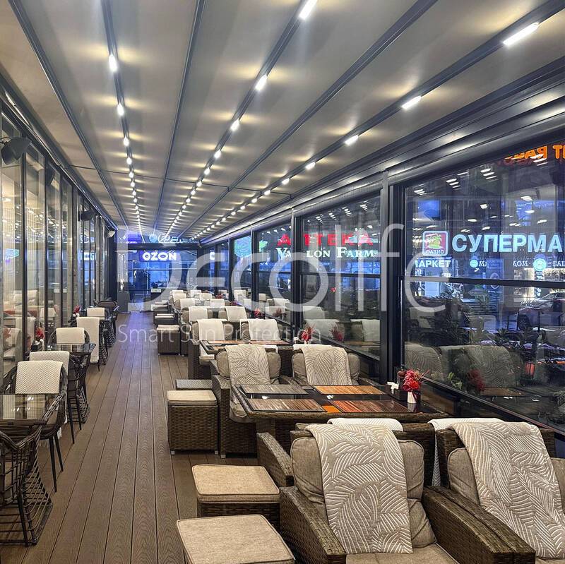 Пергола Decolife Solo Basic + гильотинное остекление W500 купить для кафе и ресторана | Москва | 652